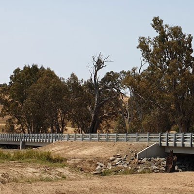 The bridges consisted of Steel driven Circular Hollow section piles, integral abutments & pier with Prestressed Concrete T-beams cast monolithic with reinforced concrete overlay slab